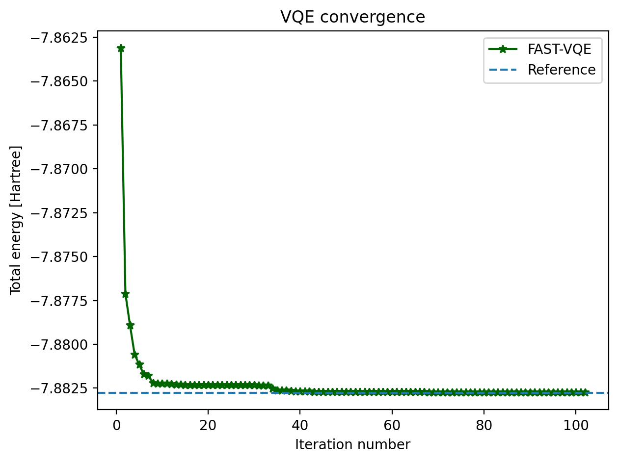 In this example, we plot the convergence of a FAST Variational Quantum Eigensolver (FAST-VQE) calculation.